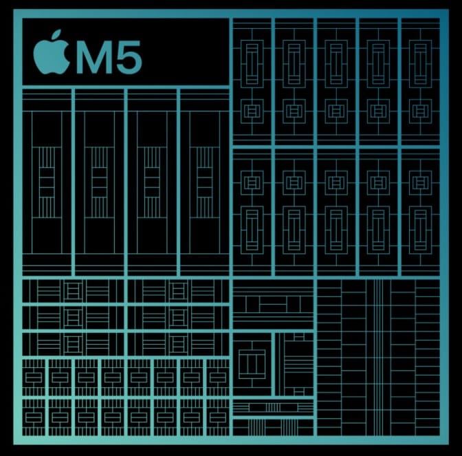 • CPU cores: M2 = 8-core (4 performance + 4 efficiency); M5 = 10-core (4 performance + 6 efficiency).